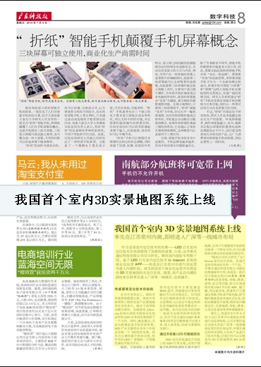 [廣東科技報(bào)]我國(guó)首個(gè)室內(nèi)3D實(shí)景地圖系統(tǒng)上線發(fā)布時(shí)間: