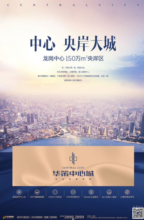 【華策中心城】位于龍崗中心城,緊鄰龍崗河,享一線河景資源。項目集住宅、寫字樓、公寓、商業(yè)等多項業(yè)態(tài)于一體,并規(guī)劃有幼兒園、學校及活動中心等文體配套,總建面達150萬平米,是片區(qū)內(nèi)少有的超大體量城市綜合地產(chǎn)集群項目,也是深圳目前唯一一個百萬級濱河大盤,建成后,必將成為龍崗的標桿項目,引領(lǐng)片區(qū)人居生活方式的變革。