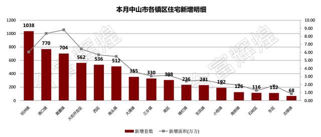 根據合富輝煌(中國)中山公司市研部監測,本月中山共有16個鎮區新增,住宅新推貨量為6196套,63.66萬方,環比9月8278套下降25%,82.25萬方下降23%。