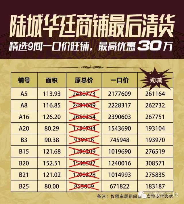 一場精彩紛呈的車市盛宴,屆時,引爆陸豐全城熱情的將不止是炫酷的豪車,和眾品牌靚麗車模匯集的視覺沖擊,更有陸城華廷震撼推出終極讓利一口價旺鋪!車展期間推出終極優惠,最高優惠30萬!