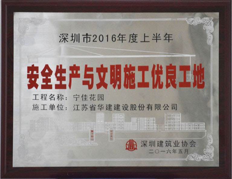 項目負責人表示,寧佳花園開工以來奉行“質量第一”的宗旨,以高質量、高水平、高標準嚴格要求施工單位江蘇華建在施工建造過程中持續改善質量,不僅要對工地建設保持高度的安全意識,更要在工程結構上重點落實綠色施工,注重保護龍崗河等區域自然環境,全流程管控,打造“過程精品”。精誠所致、金石為開,寧佳花園項目憑借雄厚實力和堅持不懈的努力獲得了深圳市2016年度上半年“安全生產與文明施工優良工地”和“優質結構工程獎”雙項殊榮。