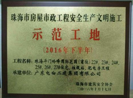 帝景灣項目工程、嶺峰國際三期工程榮獲“珠海市房屋市政工程安全生產文明施工示范工地”稱號發布時間: