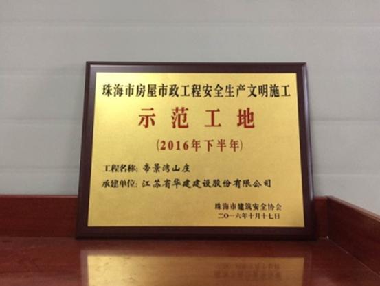 華策·帝景灣項目工程榮獲《珠海市房屋市政工程安全生產文明施工示范工地》稱號