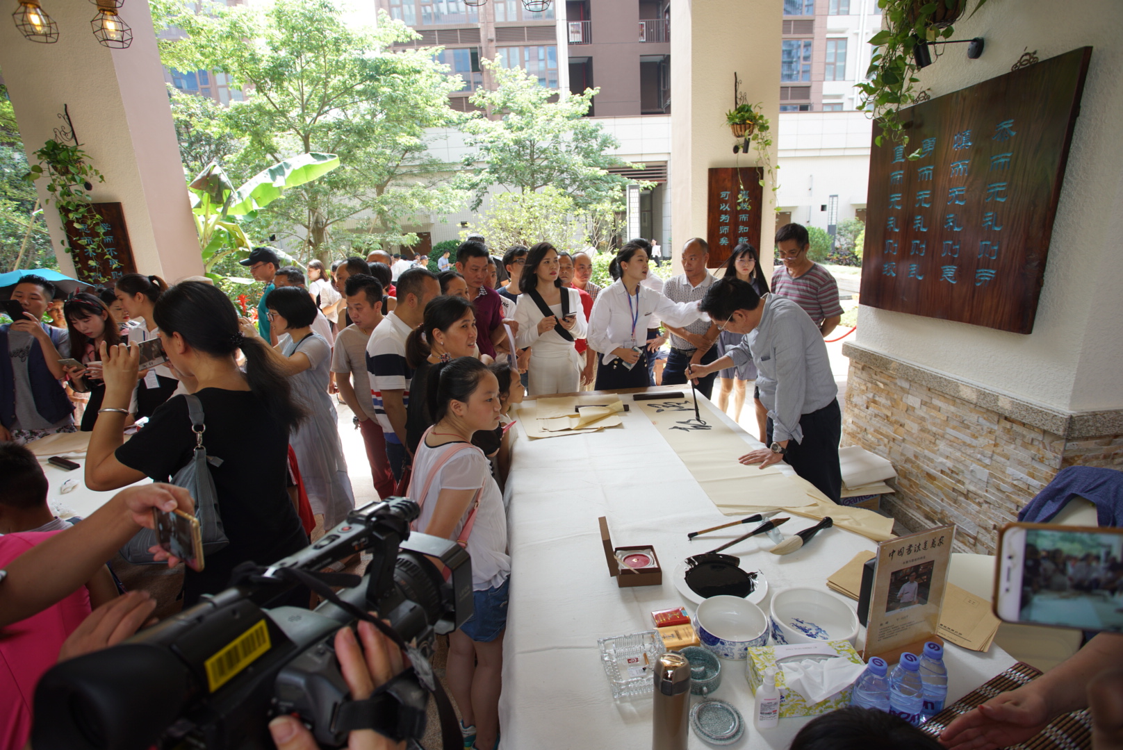 “匠心夢縈中心城,揮毫落紙如云煙。溫故知新無窮日,翰墨薪火不夜天。”2017年10月1日上午,來自中國書法協會的逾20位書法名家們齊聚深圳華策中心城一期文化長廊,揮毫潑墨,共賀文化長廊的落成及首屆“中國書法進萬家”活動的順利舉辦。這是龍崗乃至深圳區域首個房地產開發商響應國家實施中華優秀傳統文化傳承發展工程的落地之舉,也是華策集團繼去年底捐資2500萬元助力“翰墨薪傳”中小學書法師資培訓項目后對中國傳統文化傳承的又一次盛舉。