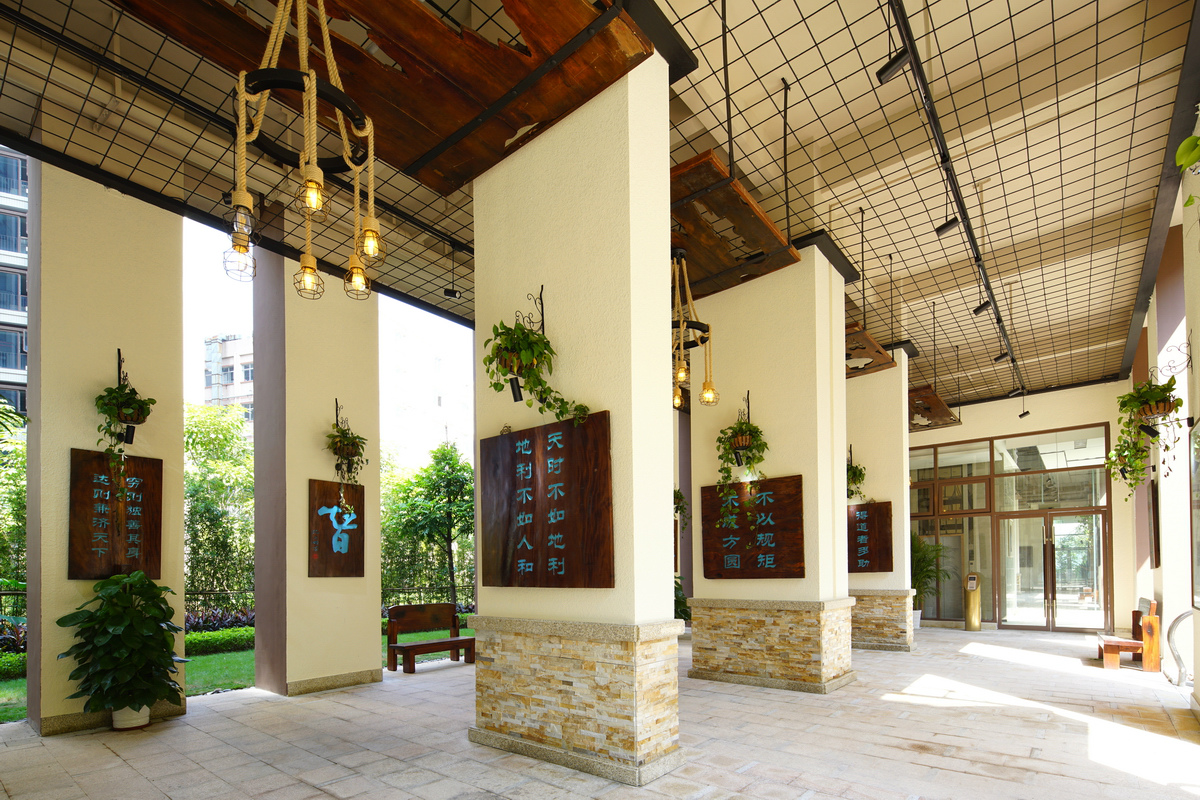 深圳華策中心城文化長廊由5棟居民樓架空層串聯而成,以歷史有名的思想家作為區域劃分,共分為“老子篇”、“孔子篇”、“孟子篇”、“莊子篇”及“曾子篇”五個區。每區懸掛有相應人物介紹和思想言論,如道家學派代表莊子的“道”、“德”思想;儒家學派代表孟子的“仁、義、禮、智”思想等。