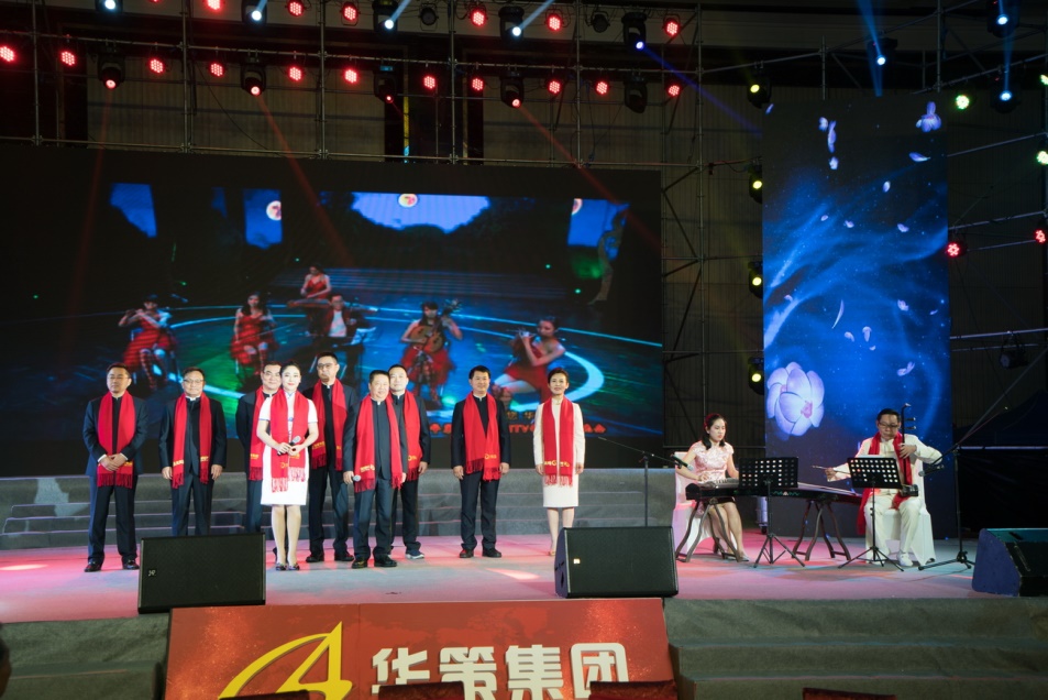 晚會上,由楊峰主席為本屆迎春晚會專門譜寫的主題歌曲《華策人之戀》把晚會推向高潮,“你我在尋夢的路上相戀,相戀時沒有甜言蜜語,但又結下了不解的緣......”伴隨著董事局總裁余道群、董事局秘書劉西洋演繹的優美動聽的旋律,在座一代交替的華策人思緒萬千,昔日加入華策時的憧憬幕幕重現,難忘的回憶和今時今日的理想,體現交織出廣大員工對華策這個大家庭的鐘情與眷戀。楊峰主席親自拉二胡伴奏和全體董事局成員上臺的和聲伴唱,為《華策人之戀》的演繹又增添出歌詞和旋律以外的紛呈爛漫的光彩。