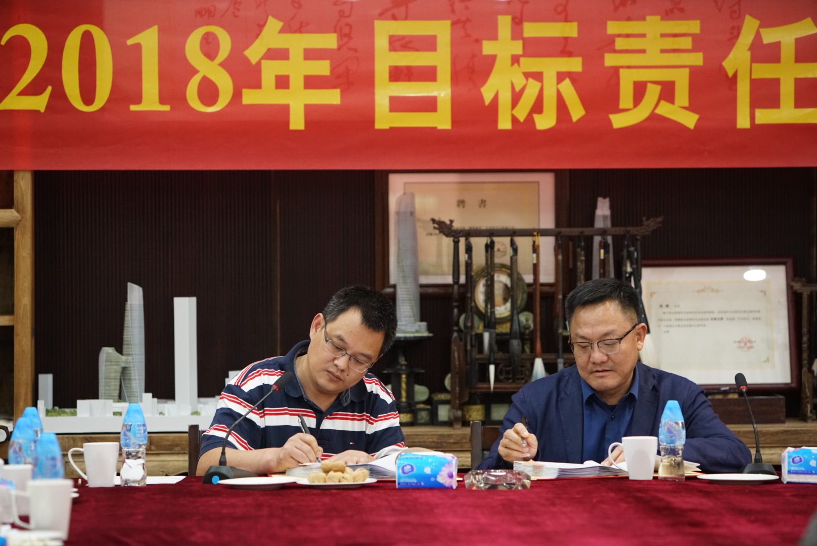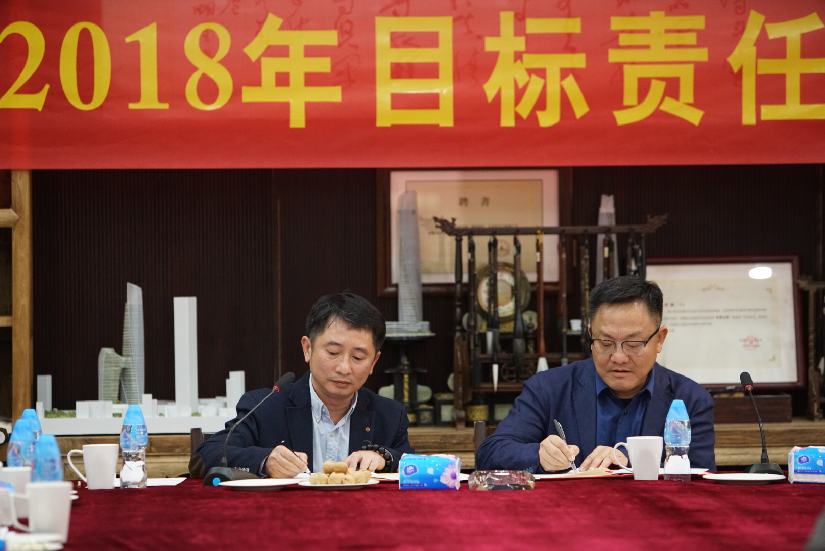 資金計(jì)劃一部總經(jīng)理薛立業(yè)與董事總裁余道群簽署目標(biāo)責(zé)任狀
