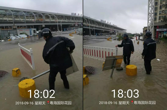 面對近年來日益頻繁的自然災害,華策集團始終以規劃為龍頭,逐步完善防災救災標準體系。一年前在應對超強臺風“天鴿”時,珠海主城區停水停電。得益于平時維護得當,加上工作人員反應迅速,停電20分鐘后,南灣國際小區兩臺柴油發電機開始發出轟鳴,為小區提供備用電力。今年“山竹”臺風中,電纜線路徑的完美設置依然保障小區供電,真正實現為每一位生活家保駕護航。