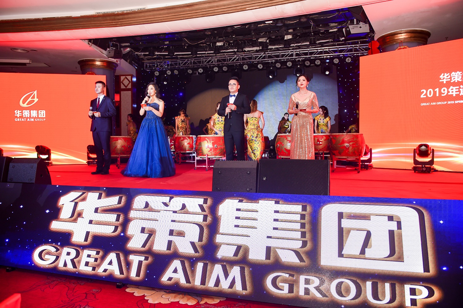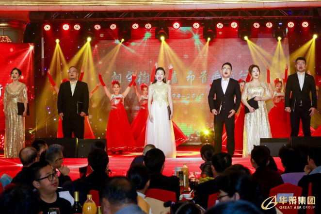 緊接著,本次晚會的主持人閃亮登場,邀請董事局領導上臺敬酒,在美好的賀詞與期許中,晚宴正式開始。