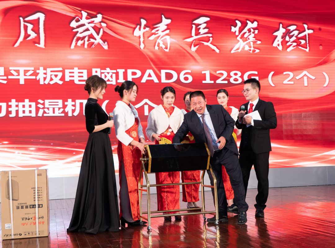 辛勤勞作鑄輝煌,發展碩果眾人享。晚宴期間,一輪接一輪激動人心的抽獎,把新年的幸運傳遞給現場的每一個人。本次年會獎品包括現金特等獎、華為5G手機、精美筆記本電腦、蘋果平板電腦、藍牙耳機、抽濕機、音響等等113個獎項,集團董事局領導分別上臺抽獎,讓人驚喜不斷,現場高潮迭起,尖叫聲響徹整個會場。
