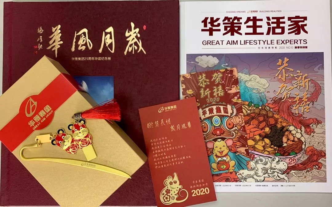 值得一提的是,集團文宣部特別為每位到場人員準備了《華策集團25周年華誕紀念冊》、《華策生活家》2020年新春特別版、鼠年定制的精美U盤以及書簽作為伴手禮。所有蒞臨晚會的領導、嘉賓、同仁人手一份,大家紛紛表示驚喜與感謝。