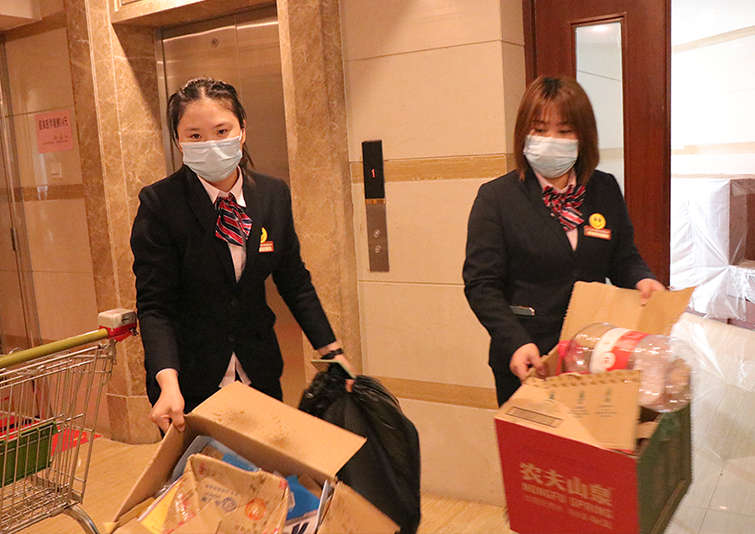茂豐社區(qū)黨委書記劉戈冰在得知物業(yè)的情況后,從物資準(zhǔn)備、人員安排、心理疏導(dǎo)上給予強(qiáng)力支持,王萍萍的心理包袱漸漸放下,日常工作精明干練的一面漸漸展露出來。在社區(qū)的統(tǒng)一要求下,王萍萍安排門崗對(duì)小區(qū)陌生人員進(jìn)行嚴(yán)格管控,做好人員車輛登記、監(jiān)測(cè)體溫;面對(duì)物業(yè)人員少的情況,萍萍親力親為給每一位居家觀察者及家庭成員買菜送物資,保障其基本生活。“一天下來,我都沒顧上喝一口水,從1月19日至今(2月6日)一天無休,但好在把小區(qū)這么多人的情緒穩(wěn)住了。就想著快點(diǎn)再快點(diǎn),我們防控越及時(shí),小區(qū)老少越平安。”