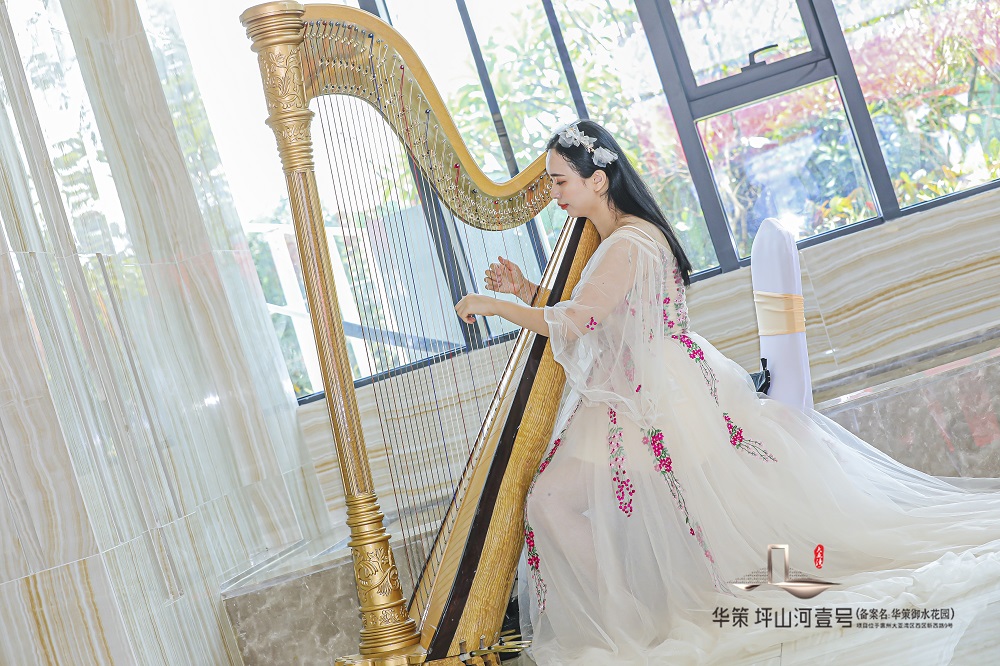 現(xiàn)場(chǎng)精彩紛呈,驚喜不斷。營(yíng)銷(xiāo)中心設(shè)計(jì)感十足,每個(gè)細(xì)節(jié)都體現(xiàn)著項(xiàng)目的用心之至。入口處精心布置了豐富的金屬花箱 Flower Box、定制金屬框以及繽紛的鮮花束;移步而進(jìn),備有精美茶歇供現(xiàn)場(chǎng)來(lái)賓品嘗,加之極具儀式感的創(chuàng)意簽到,為項(xiàng)目人文美學(xué)的盛啟增添一抹色彩。鮮花禮盒定制的尊貴體驗(yàn)、專(zhuān)業(yè)花藝師的現(xiàn)場(chǎng)教學(xué),豎琴優(yōu)雅的表演,為來(lái)賓營(yíng)造活動(dòng)氛圍,獻(xiàn)上一場(chǎng)視聽(tīng)美學(xué)盛宴,感受華策集團(tuán)的世界級(jí)審美標(biāo)準(zhǔn)和匠心品質(zhì)。