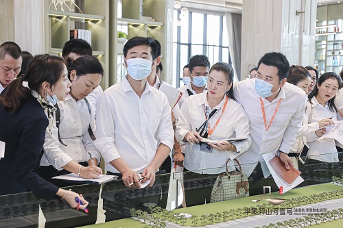 華策坪山河壹號(hào)營(yíng)銷(xiāo)中心沙盤(pán)區(qū)和洽談區(qū)人流涌動(dòng)