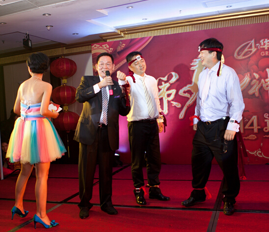 游戲環(huán)節(jié)《我最搖擺》它以最前衛(wèi)、最廣泛、最運(yùn)動(dòng)、最互動(dòng)的方式吸引了所有華策人的關(guān)注。尤其當(dāng)楊智雄、唐欽之等四位董事上臺(tái)與普通員工一起,頭上、手上和腳上都系上了計(jì)步器,隨著音樂(lè)響起,開始瘋狂地“搖擺”時(shí),場(chǎng)下一片呼喊助威聲,將現(xiàn)場(chǎng)氣氛引向最高潮。