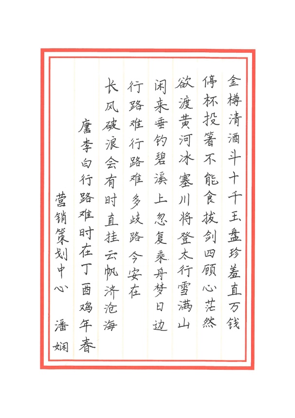4月27日,華策集團(tuán)“首屆硬筆書法大賽”圓滿落幕,經(jīng)綜合評(píng)選,10幅優(yōu)秀作品脫穎而出,分別獲一、二、三等及優(yōu)秀獎(jiǎng)。