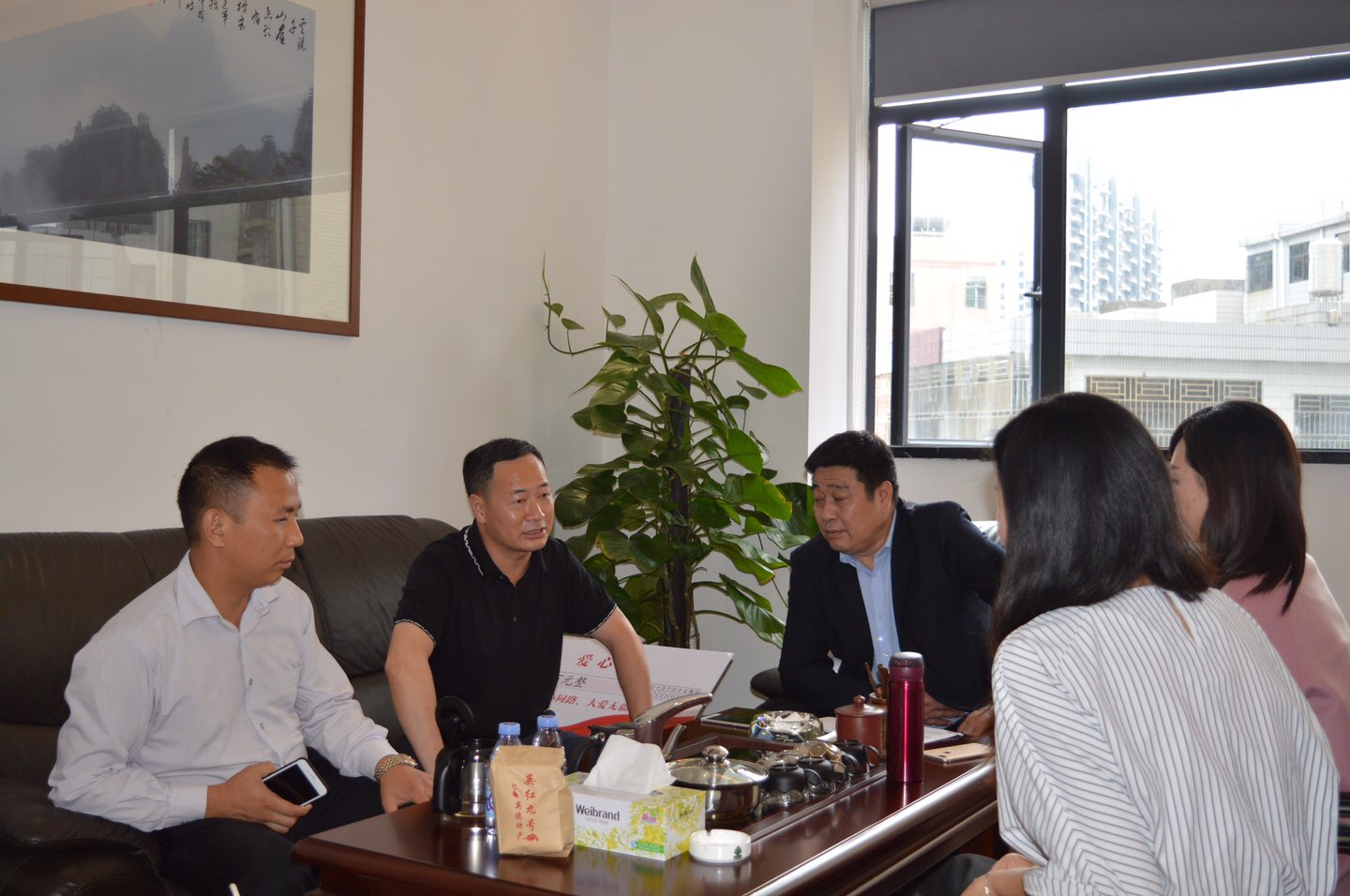 集團(tuán)行政副總監(jiān)薛紅(左三)與深圳公司行政總監(jiān)曾憲洪(左二)會面